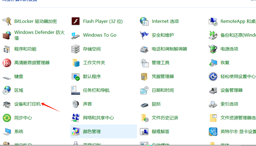 1. 在“开始”菜单找到“控制面板”,找到“设备和打印机”