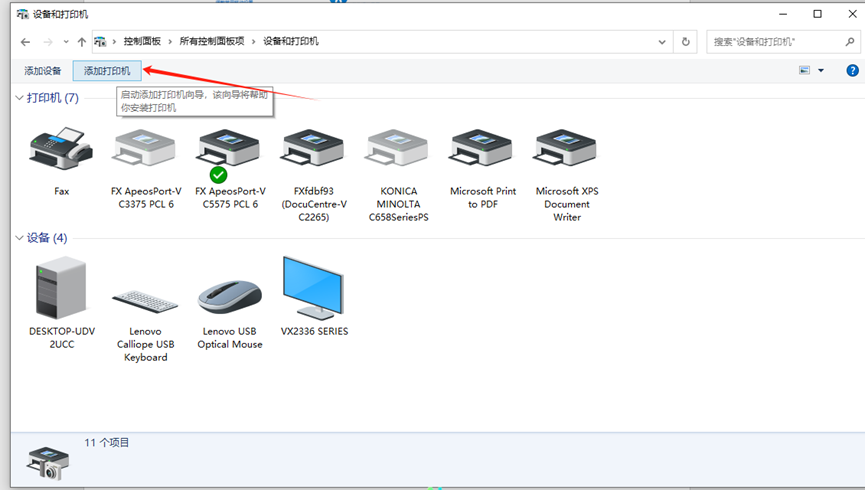 2. 找到添加打印机,如图